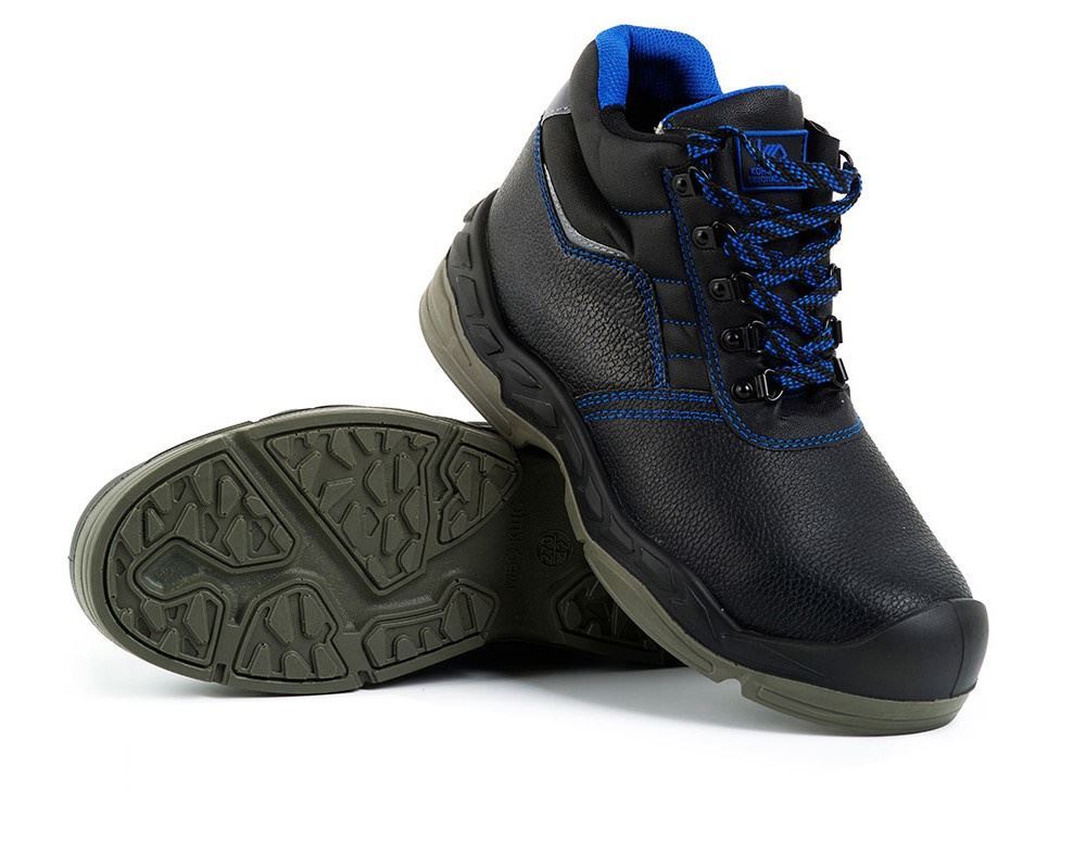 Ботинки с глухим клапаном и мягким кантом, шнуровкой на металлических петлях, с гигроскопичной подкладкой под берцы, светоотражающими элементами, с защитным металлическим подноском и жестким задником на двухслойной подошве ПУ/ТПУ.