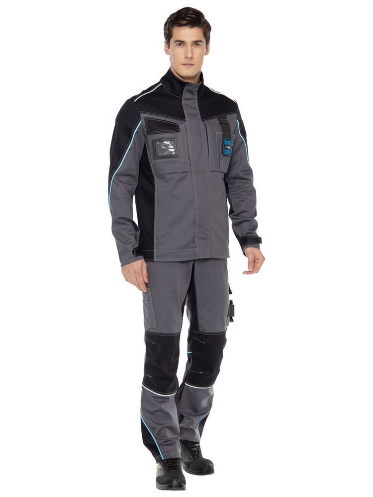 Куртка удлиненная с застежкой на молнию под планкой на липучках. Многофункциональные объемные нагрудные карманы, в том числе на молниях, для средств связи, ПВХ карман для бэйджа. На кармане для средств связи клапан из стропы с шевроном с защитными свойствами. Нижние карманы на молниях в швах. Спинка с кокеткой, отрезными боковыми частями и вентиляционными отверстиями в области лопаток с подкладкой из трикотажной сетки. Рукава втачные эргономичной формы, с вентиляционными вставками из сетки в нижней части проймы и с хлястиками на липучках по низу для регулировки объема. На левом рукаве съемный шеврон из СВМ на липучке. Воротник стойка со световозвращающим трансфером в виде шлема. По низу куртки внутренняя кулиса для регулировки объема.