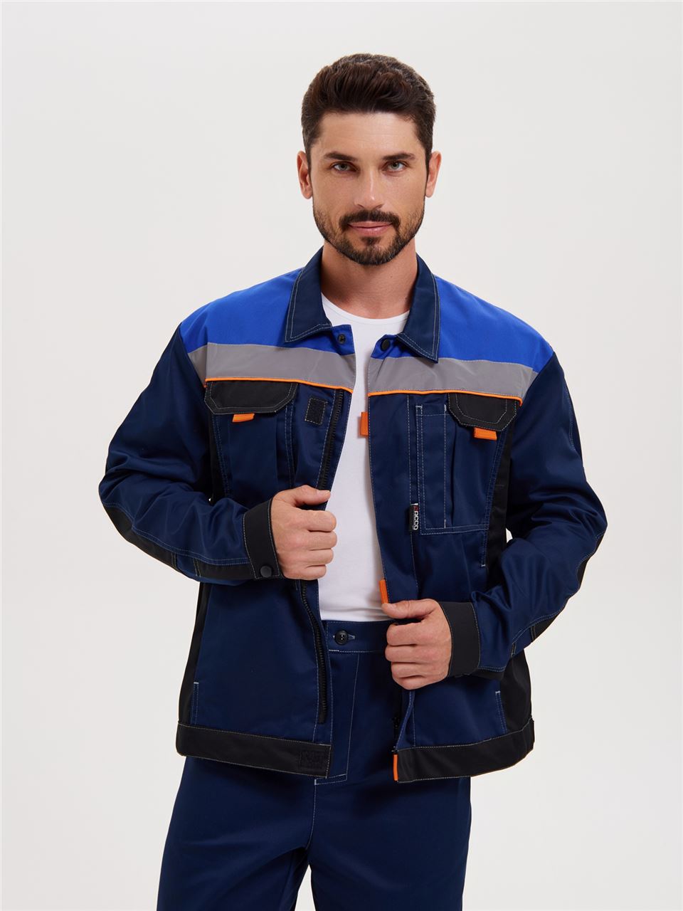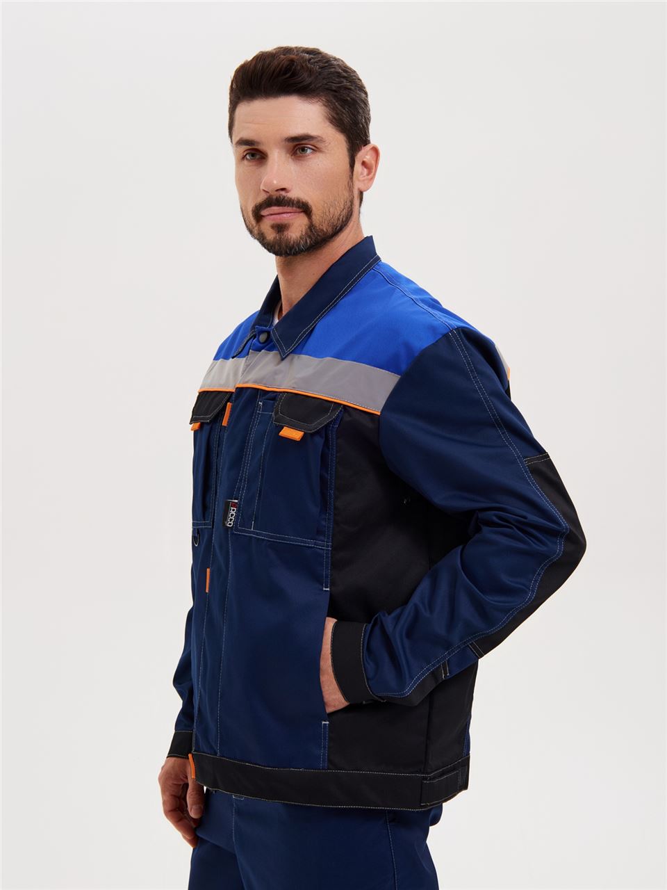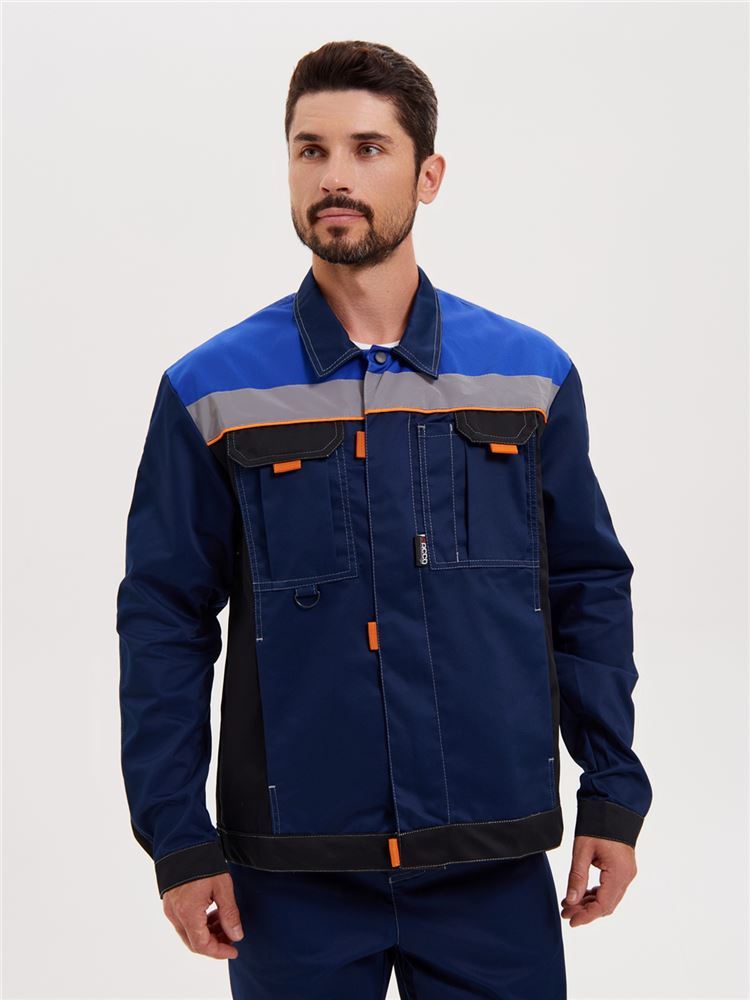 Усиления в области локтей. Куртка оснащена двумя боковыми врезными и двумя нагрудными накладными много- функциональными карманами. На левом кармане имеется отделение для ручек.