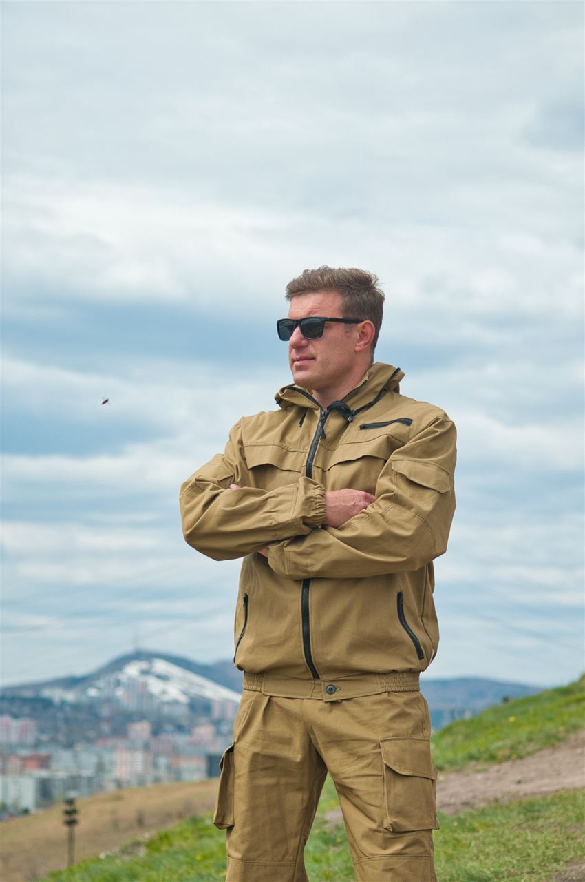 Костюм состоит из куртки и брюк. Съемная антимоскитная сетка, складки-ловушки на куртке, внутренние эластичные манжеты на запястьях и щиколотках, эластичная утяжка поясов и низа рукавов и брюк обеспечивают защиту от проникновения к телу человека вредных насекомых. Втачной капюшон, бортовая застежка на «молнию» с подпланкой, прорезные карманы с «молниями» Объемные карманы с клапанами на брюках . Дополнительные накладки в области сиденья, коленей и локтей усиливают зоны, критичные для изнашивания.