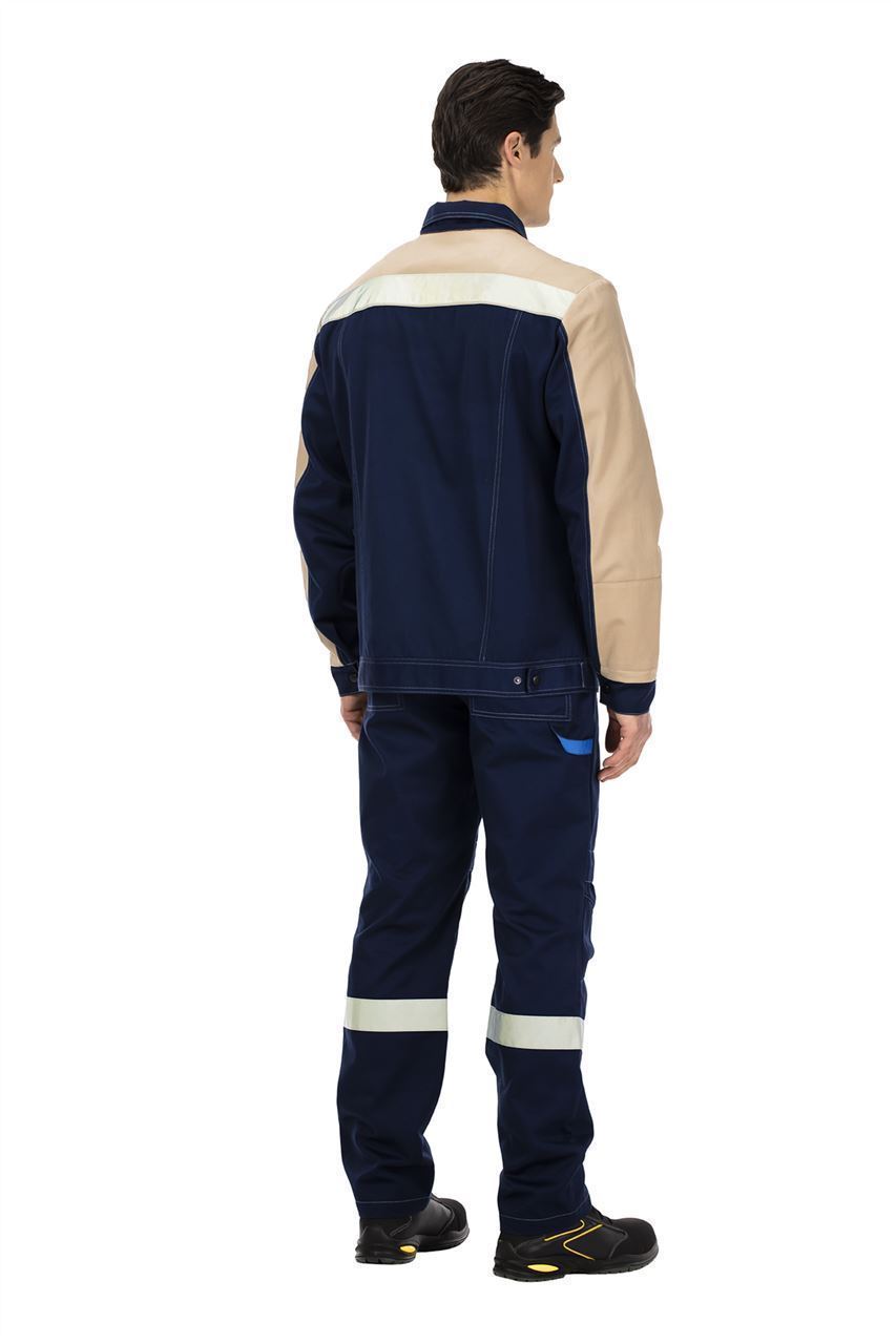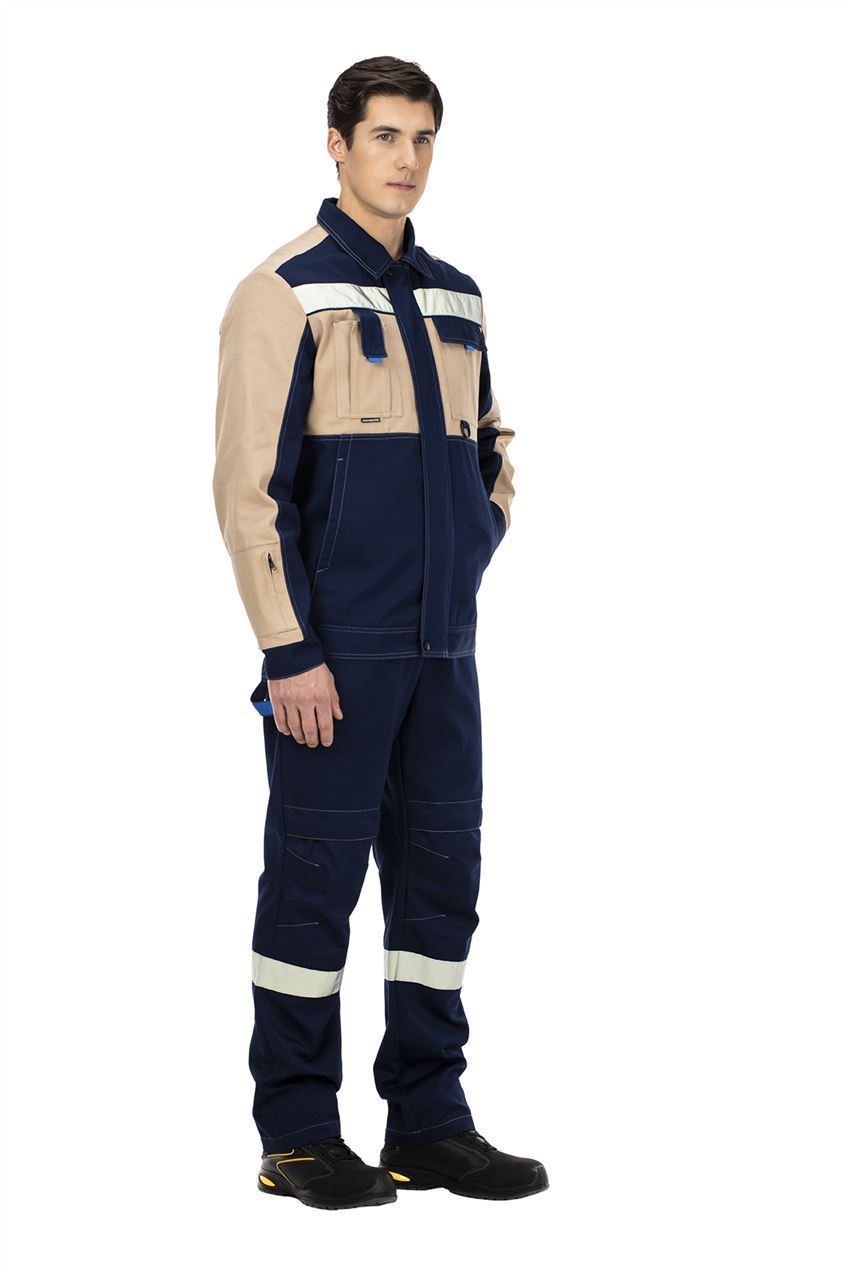 По низу кокеток куртки и по низу полукомбинезона расположены широкие световозвращающие полосы для безопасной работы в условиях плохой видимости.