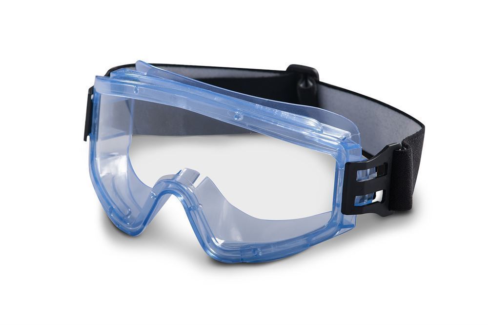 Очки с панорамным защитным стеклом из оптически прозрачного ацетата целлюлозы, имеющего специальный незапотевающий слой изнутри и твердый слой снаружи и мягким корпусом из эластичного материала Evoprene, отличающегося устойчивостью к воздействию высоких температур в диапазоне от -60° до +120°С, высокой электрической сопротивляемостью и химической устойчивостью.