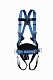 Удерживающая страховочная привязь состоит из наплечных и набедренных лямок, выполненных из различных цветов для удобного одевания привязи, высокий прошитый кушак с влагоотводящей сеткой, 2 боковые точки для удержания и позиционирования, анкерная точка на груди и точка крепления на спине, с удлинителем страховочной точки для удобного присоединения соединительно-амортизирующей системы, индикатор рывка, на кушаке имеются петли для развески инструментов.