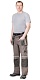 Задние половинки с накладными карманами и патой для инструментов. Пояс широкий, застегивается на 2 пуговицы, с резинкой по боковым швам.