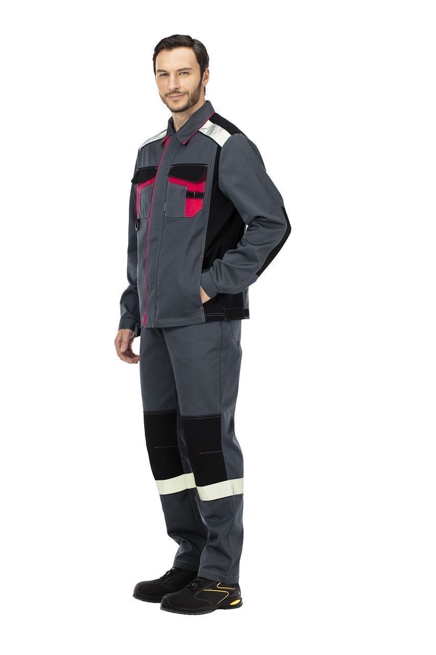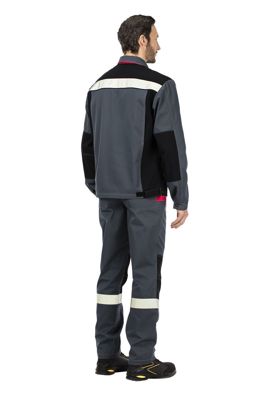По низу кокеток куртки и по низу брюк расположены широкие световозвращающие полосы для безопасной работы в условиях плохой видимости.