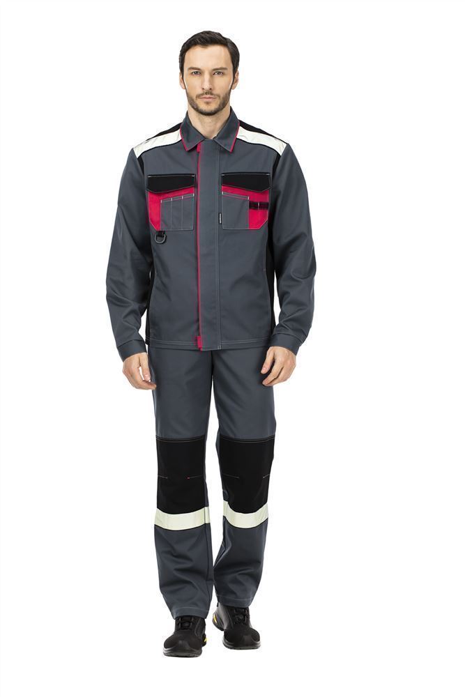 Костюм, из облегченной ткани с высоким содержанием хлопка, состоит из куртки и брюк.