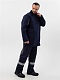 - Куртка прямая с центральной бортовой застежкой на молнии, закрытой ветрозащитным клапаном с застежкой на кнопоках.