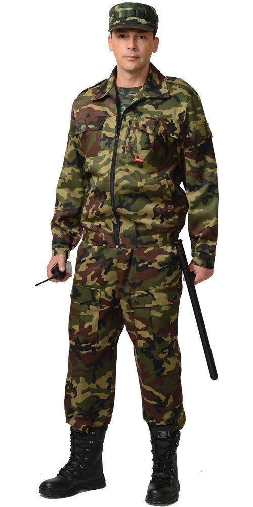 Тк. смесовая с ВО пропиткой, пл. 210 г/кв.м.. Куртка с притачным поясом, нагрудными и боковыми карманами. Куртка и брюки с застёжкой на "молнию".