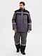 Костюм состоит из куртки и полукомбинезона. Подкладка костюма усилена ветрозащитной тканью. Куртка с центральной застежкой – “молнией”, закрытой ветрозащитной планкой на липучках. Нагрудные карманы закрыты клапаном на липучках. Объёмные нижние накладные карманы с клапанами на липучках. Под левым нагрудным карманом полукольцо для крепления пропуска. Рукава с манжетами из мягкого трикотажа. Воротник утепленный на подкладке из флиса. Капюшон съемный, на молнии, с регулировкой объема. Спинка с удлиненным низом. Внутри куртки карман для телефона и небольших документов. По талии куртки кулиса для регулировки. Полукомбинезон с центральной застежкой на двухзамковую молнию. Бретели из эластичной резинки с регулировкой длины и с застежкой - фастекс. Спереди объемные накладные карманы с боковым входом. На спинке - эластичная тесьма для регулировки объема по талии. На кокетках спереди и спинке куртки, по низу рукавов, по низу брюк полукомбинезона расположен СОП шириной 50мм и канты контрастного цвета.