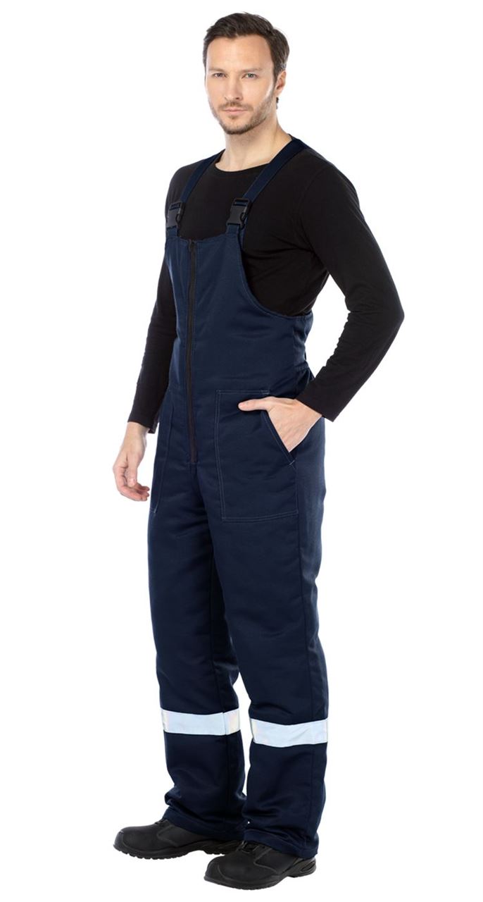 - накладные карманы с косыми входами спереди на полукомбинезоне,