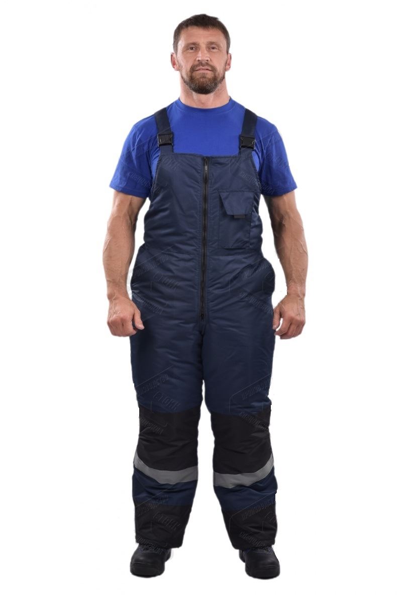 Полукомбинезон с центральной застежкой на 2-х замковую молнию, с внутренней ветрозащитной планкой. Внизу боковых швов обработаны разрезы, застегиваются на тесьму «молния».