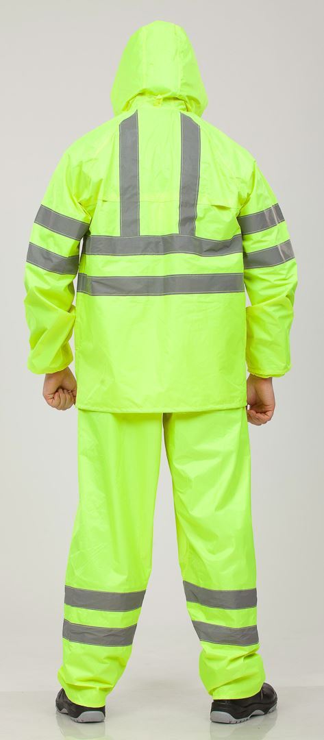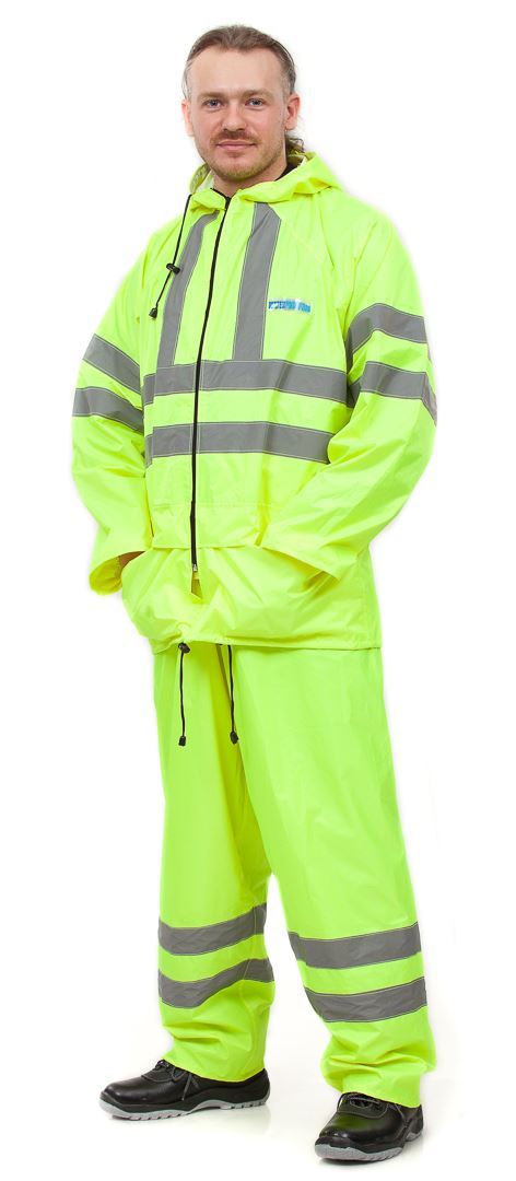 Костюм изготавливается из ткани ярко-оранжевого и ярко-лимонного цветов. Имеет светоотражающие полосы. Соответствует 3-му классу по ГОСТ Р 12.4.219-99 «Одежда специальная сигнальная повышенной видимости».