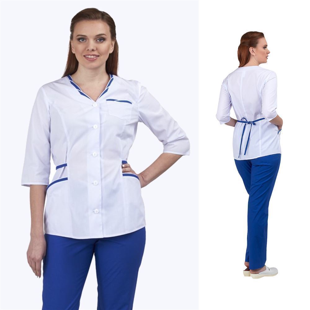Костюм женский медицинский ОЛЬГА белый/василек (куртка+брюки)