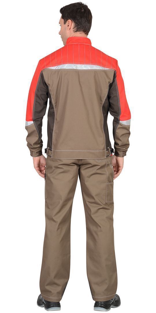 Куртка прямого силуэта, короткая, воротник стойка, с центральной застёжкой на молнию, с верхними фигурными карманами с фигурными клапанами на липучке и боковыми на молнии, низ регулируется при помощи хлястиков с полукольцами. Регулировка манжета-хлястик на липучке. Светоотражающие элементы на кокетке спинки и на кокетке полочек.