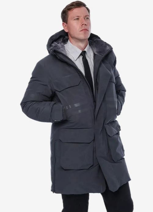 Куртка-парка мужская зимняя пуховая БРОДЕКС KW 233, т.серый