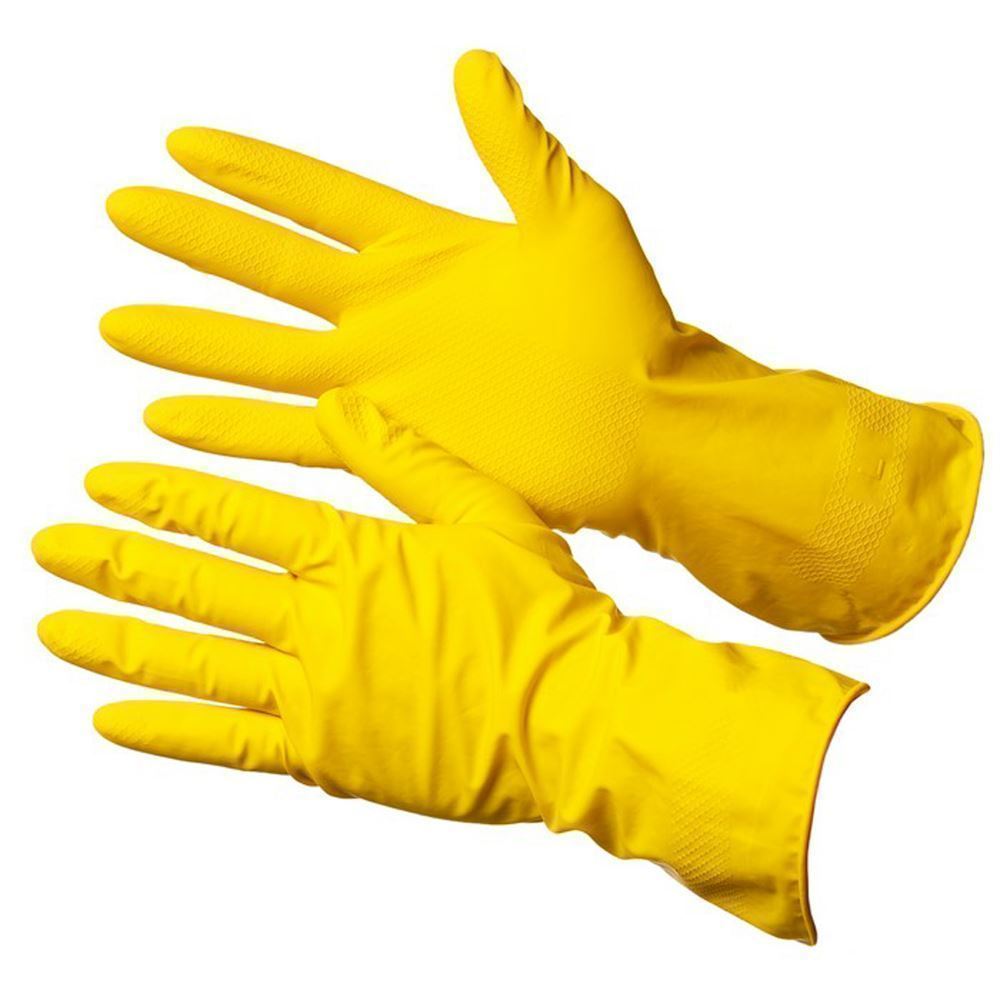 Прочные хозяйственные перчатки из натурального латекса с внутренним флокированием (напыление хлопка) для комфортной эксплуатации и поглощения пота.