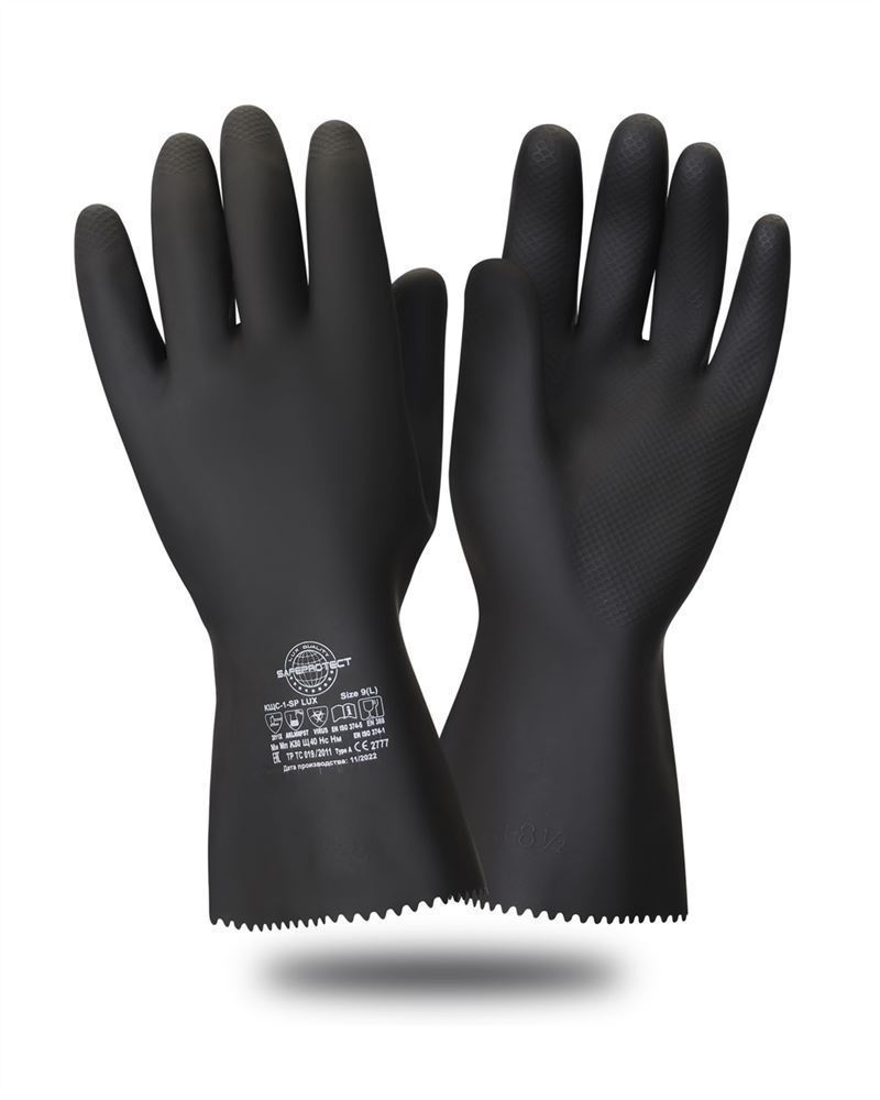 Перчатки Safeprotect КЩС-1-SP LUX черные (латекс, слой Silver, толщ.0,65мм,дл.300мм)