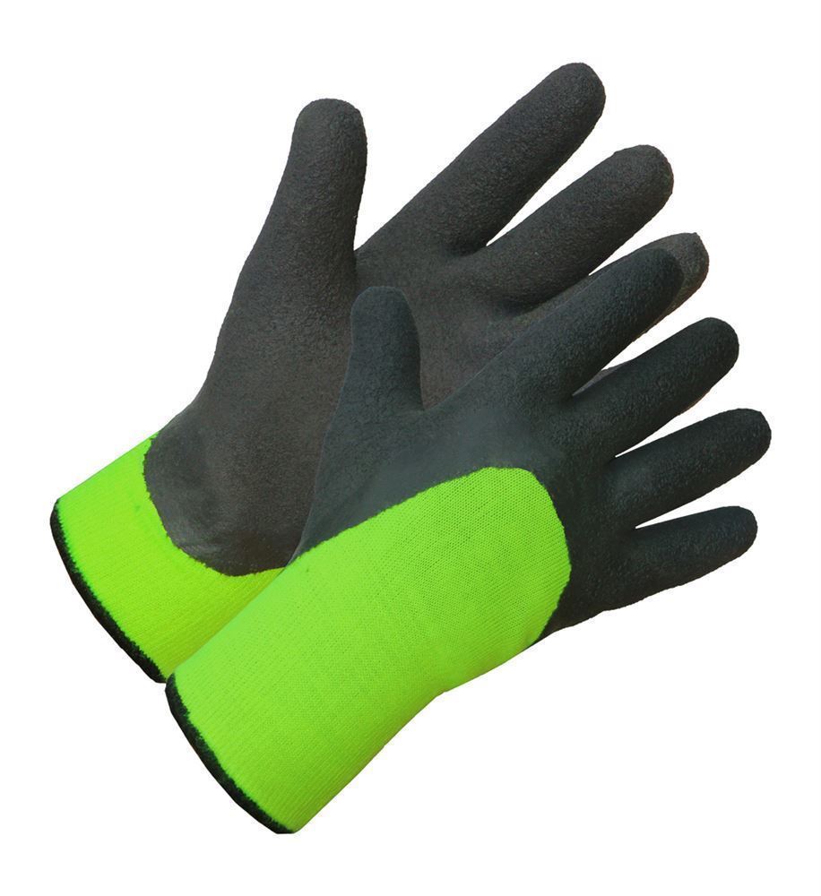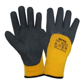Двойные перчатки из плотного трикотажа, наружная перчатка – высокообъемный акрил, внутренняя перчатка – полушерсть, с эластичной манжетой и покрытием ладоней и пальцев серым вспененным натуральным латексом. Перчатки предназначены для защиты от механических воздействий при работах, требующих обеспечить прочный захват сухих и влажных предметов в условиях пониженных температур. Обеспечивают превосходный комфорт рук в условиях пониженных температур. Хорошая вентиляция. Надежное удержание предметов в руке благодаря рельефной нескользящей поверхности.