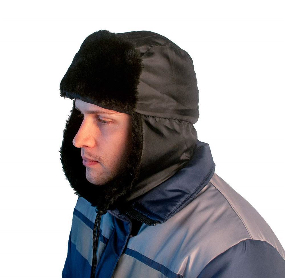Шапка ушанка АНТИФРОСТ черная подклад бязь универсальный размер