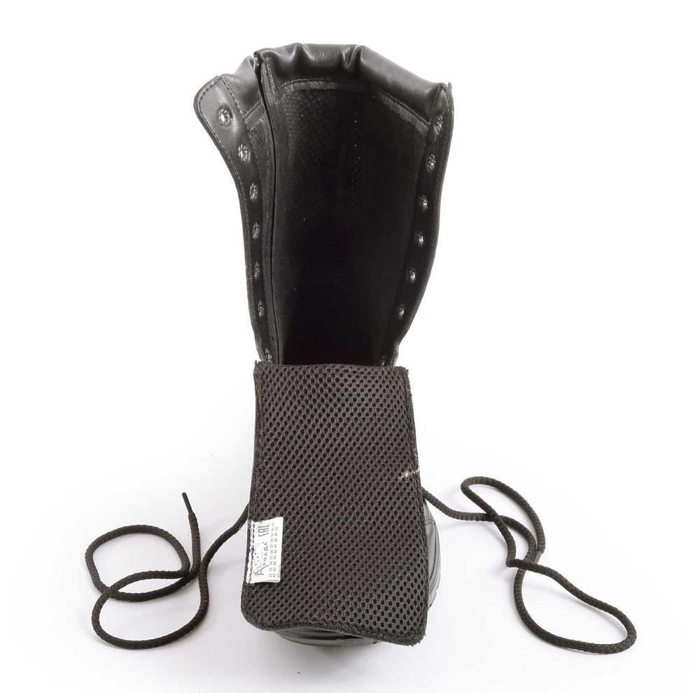Основная часть берца изготовлена из плотной гладкой кожи, а высокая часть берца из перфорации. И вновь двойная фиксация, скоростная шнуровка и молния.
