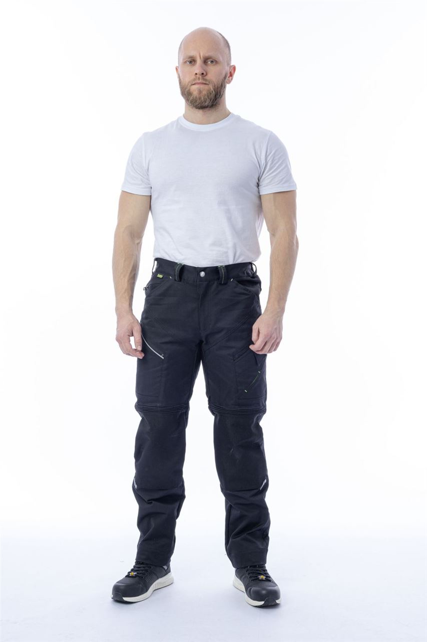 Брюки имеют эластичный пояс. Есть шлёвки для ремня. 7 разнообразных карманов позволят носить с собой важные мелочи, расходники, гаджеты. Отделения под наколенники выполнены из прочного и устойчивого к истиранию материала. По низу брюки имеют широкую подгибку, чтоб обеспечивает запас удлинения для высоких людей. На брюках размещено достаточно светоотражающих элементов, чтобы обозначить вашу фигуру в тёмное время суток или в помещениях без освещения. Это хороший бонус к вашей безопасности на любом промышленном объекте.