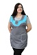 Фартук средней длины, перекидной. Спинка без отделки. Полочка с фигурной отрезной кокеткой из отделочной ткани, округлым воротником и овальным элементом с декоративными пуговицами.