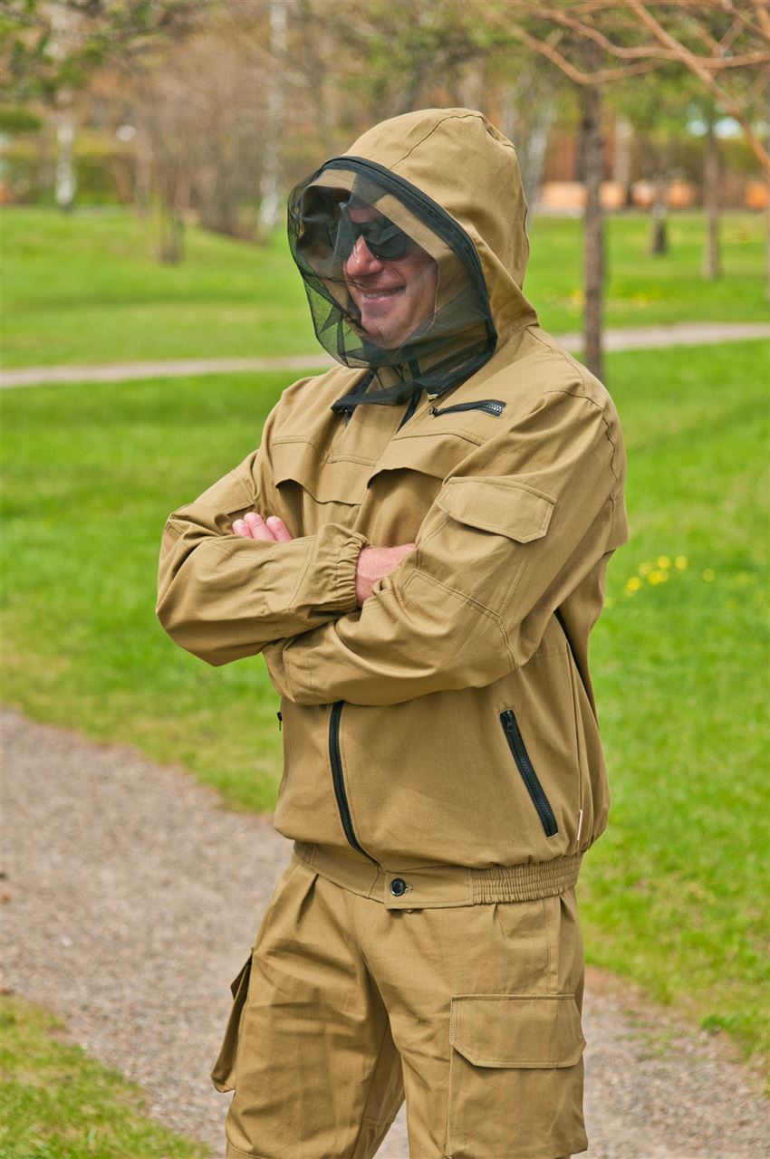 Костюм состоит из куртки и брюк. Съемная антимоскитная сетка, складки-ловушки на куртке, внутренние эластичные манжеты на запястьях и щиколотках, эластичная утяжка поясов и низа рукавов и брюк обеспечивают защиту от проникновения к телу человека вредных насекомых. Втачной капюшон, бортовая застежка на «молнию» с подпланкой, прорезные карманы с «молниями» Объемные карманы с клапанами на брюках . Дополнительные накладки в области сиденья, коленей и локтей усиливают зоны, критичные для изнашивания.