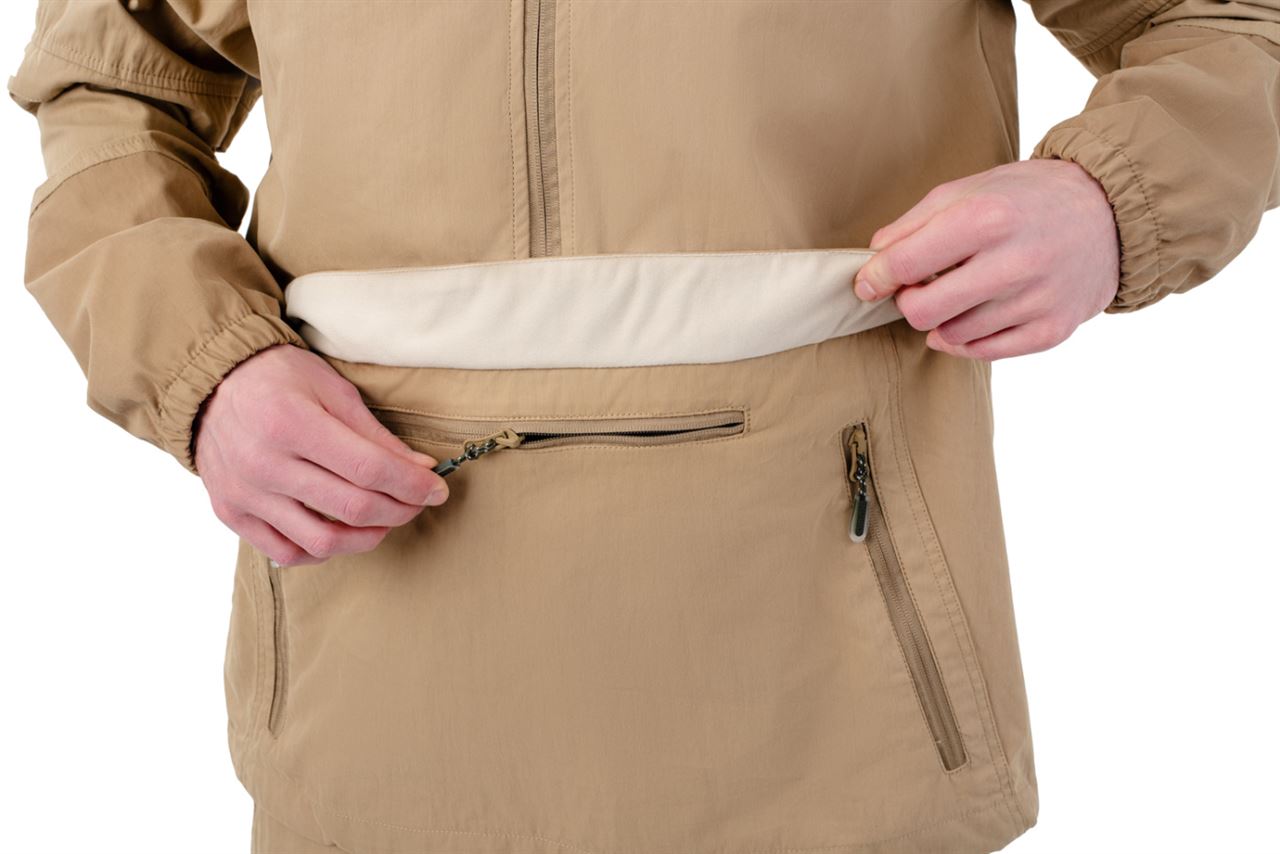 Костюм оснащен специальными ловушками для клещей, внутри куртки предусмотрен дополнительный слой хлопковой трикотажной ткани, которая заправляется в брюки для максимальной защиты от проникновения внутрь изделия. Рукава оснащены плотными трикотажными манжетами. На капюшоне предусмотрена молния для противомоскитной сетки, которая компактно укладывается в карман на груди. В передней части куртки предусмотрен объемный передний влагозащитный карман и два боковых. Этот костюм отлично подойдет для всех, кто часто и долго бывает в лесу. Для обеспечения безопасности в темное время суток вся печать на изделии является светоотражающей.
