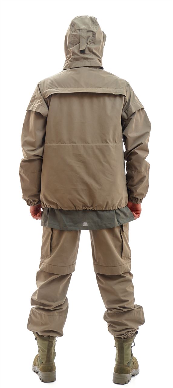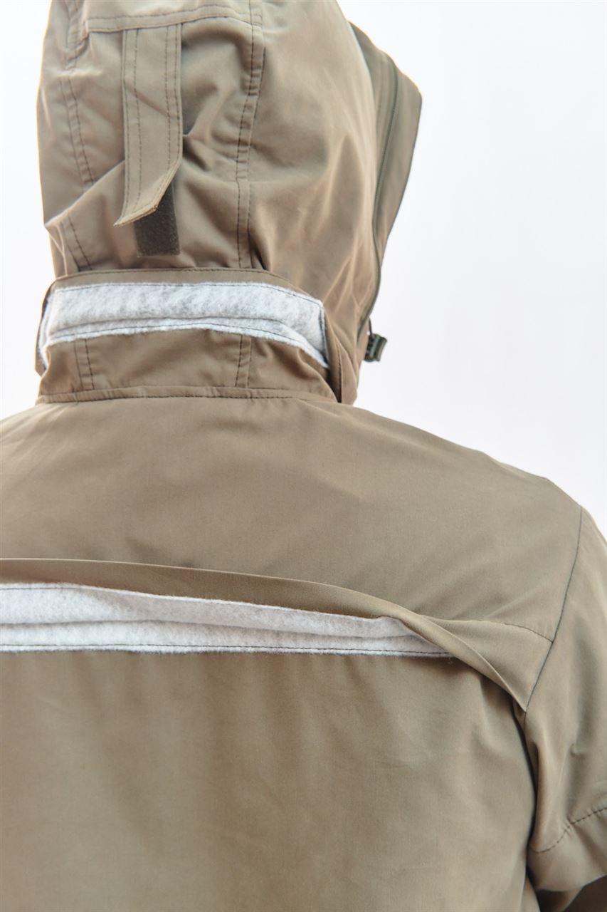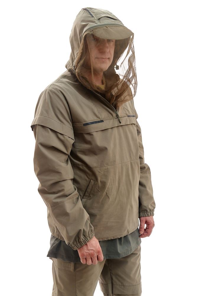 Противоэнцефалитный костюм состоит из куртки типа «анорак» с капюшоном и брюк прямого кроя.