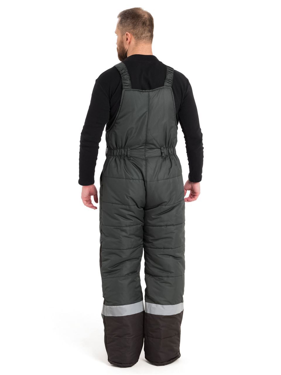 Костюм состоит из куртки и полукомбинезона. Куртка со светоотражающими полосами и кантом, с центральной застежкой на молнию, ветрозащитным клапаном на текстильную застежку с чередованием кнопок и внутреннюю планку с уголком для защиты подбородочной части от молнии. Воротник стойка, с внутренней стороны флис, съемный утепленный капюшон. На правой полочке нагрудный карман для бейджа. Рукава с внутренними трикотажными манжетами. Полукомбинезон со светоотражающими полосами , с центральной застежкой на молнию и планку на текстильную застежку, на регулируемых по длине бретелях. На правой передней половинке нагрудный карман для сотового телефона. На спинке, по линии талии в области боковых швов, кулиса.