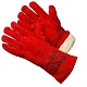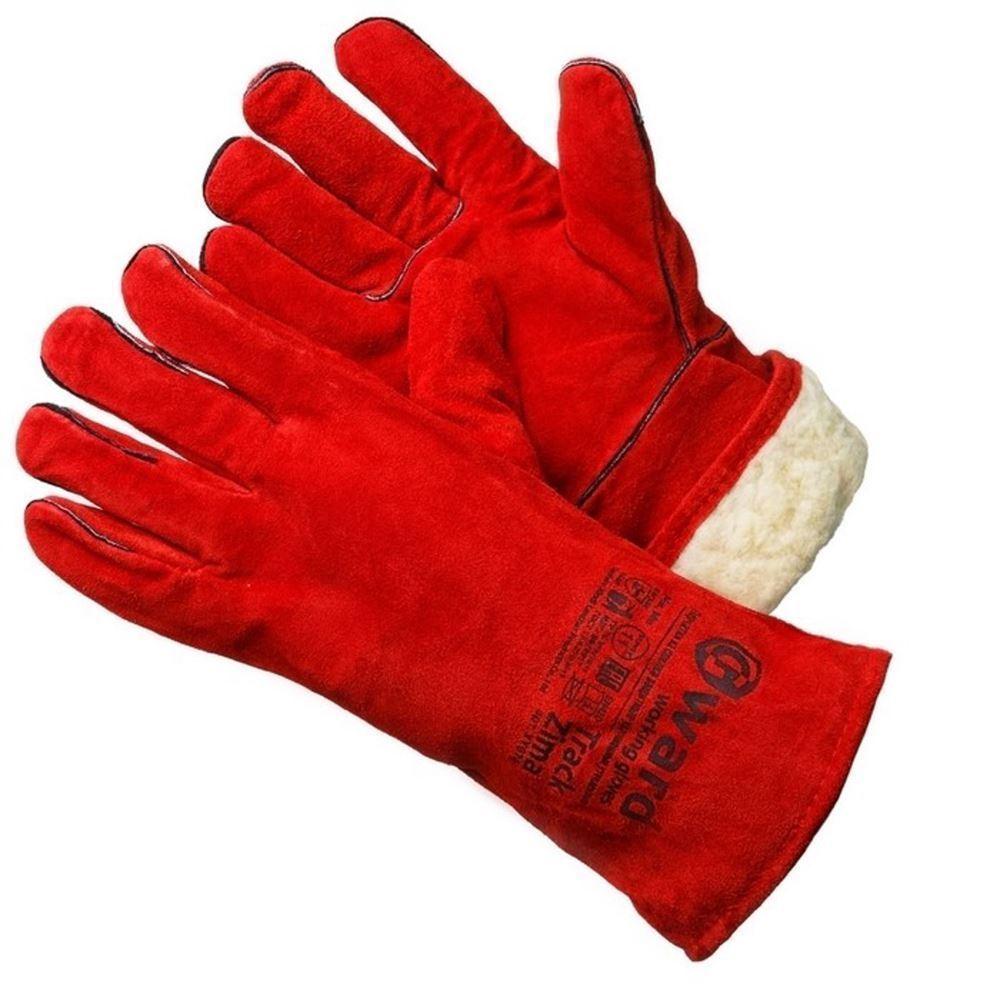 Цельноспилковые зимние сварочные краги. Сшиты из высококачественного спилка КРС красного цвета, утеплены искусственным мехом типа "овчина"
