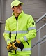 Для обеспечения безопасности работы в условиях плохой видимости помимо флуоресцентного цвета основного материала предусмотрены горизонтальные полосы СВМ шириной 50 мм - по 2 на рукавах, полочках и спинке куртки.