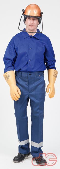 Одежда специальная защитная: Куртка-рубашка летняя термостойкая мужская и женская для защиты электротехнического персонала от термических рисков электрической дуги; от теплового излучения; от конвективной теплоты; от кратковременного воздействия открытого пламени; от общих производственных загрязнений и механических воздействий (истирания) из термоогнестойкой, антистатической ткани «ARCROS» 185 (АРКРОС 185)» с МВО свойствами (88% хлопок, 12 % ПА, плотность 185 г/м2)