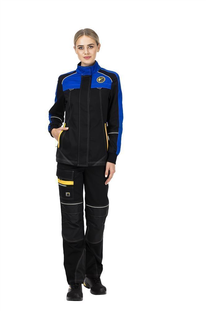 Под нижним краем левой кокетки расположено пластиковое полукольцо для крепления пропуска. Нижние передние карманы на молниях с деталями из тесьмы контрастного цвета.