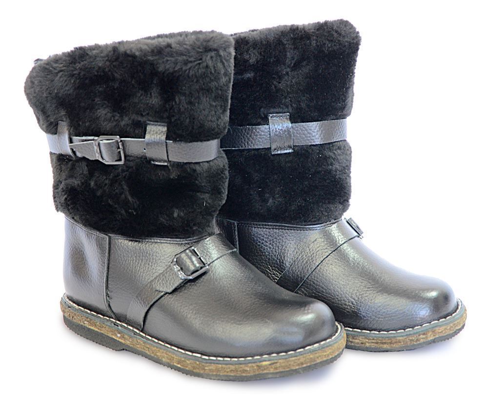 Укороченная модель.Изготовлены из натуральной кожи, голяшка комбинированная из овчины и искусственного меха, подошва на толстом войлоке и микропористой резине.